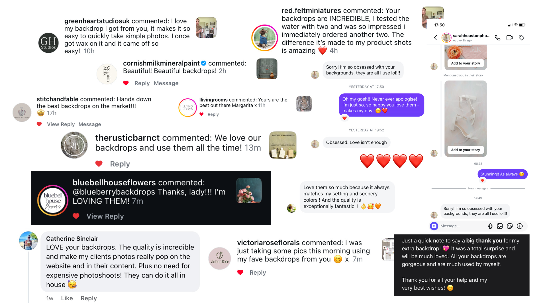 My husband ordered me some great backdrops, and I'm in love with them. I genuinely love everything... from the collections and styles to the quality of your selections, your customer service, the thoughtful and practical packaging, and all the thoughtful touches, especially the personalised notes you include with my orders. It really makes a difference.